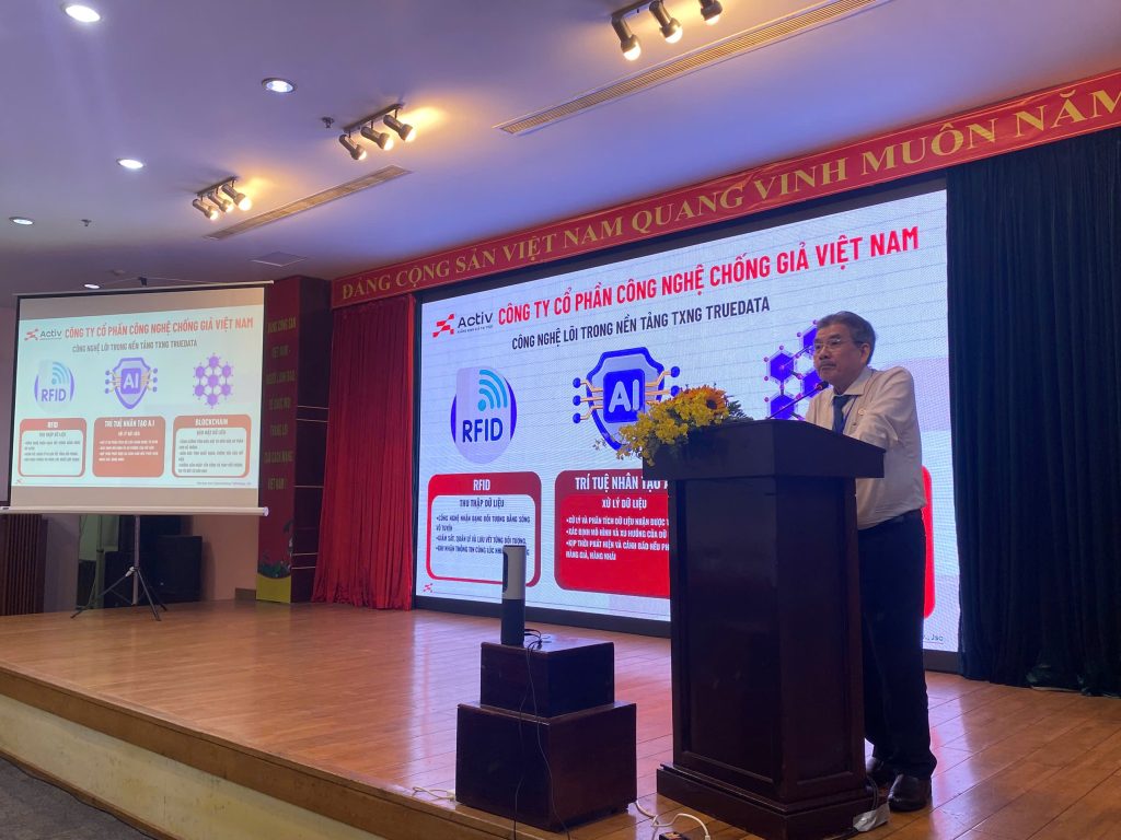 Ông Phạm Văn Thọ, trình bày về công nghệ truy xuất nguồn gốc True Data tại hội thảo.